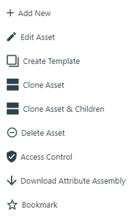 | + Add New | Create and add a new child asset element to selected asset element. | |